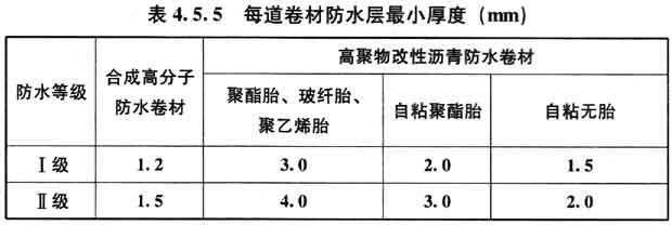 4.5.5 每道卷材防水层最小厚度应符合表4.5.5的规定。