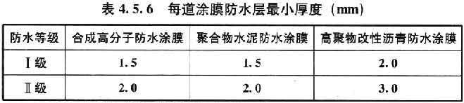 4.5.6 每道涂膜防水层最小厚度应符合表4.5.6的规定。