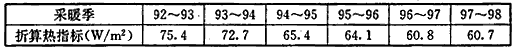 下表是根据北京市城镇供热管网1992年至1998年6个采暖季的实测资料统计分析,将连续最冷日(即室外日平均气温小于-4℃天气)的耗热量,折算为采暖室外设计温度为-9℃且采暖室内设计温度为18℃时的综合热指标。由下表可见热指标及其变化趋势,连续最冷日的折算热指标平均每年降低2.4W/m2。