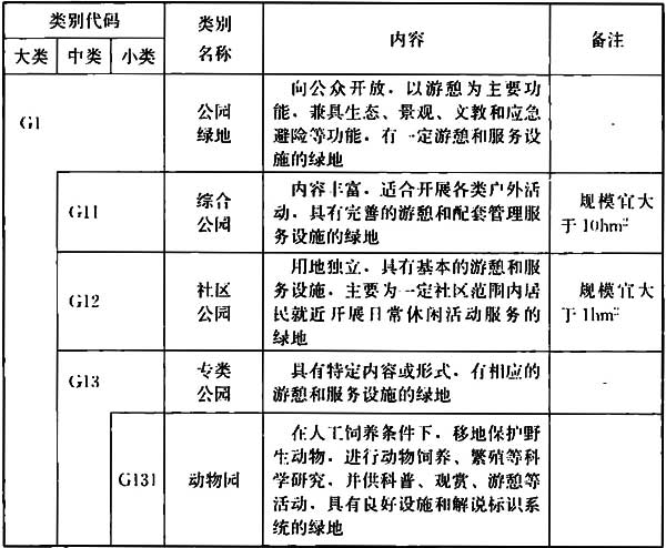 2.0.3 绿地分类应采用大类、中类、小类三个层次。
