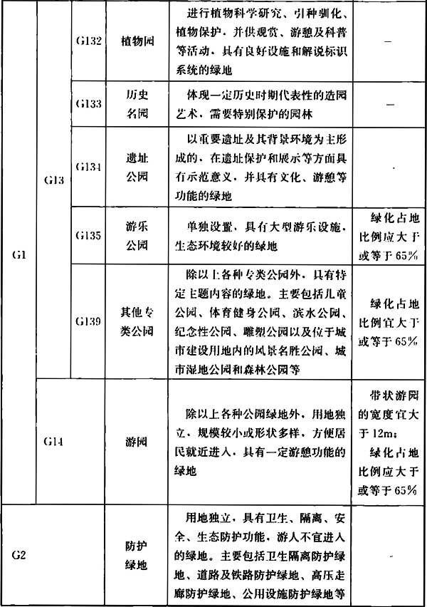 表2.0.4-1 城市建设用地内的绿地分类和代码