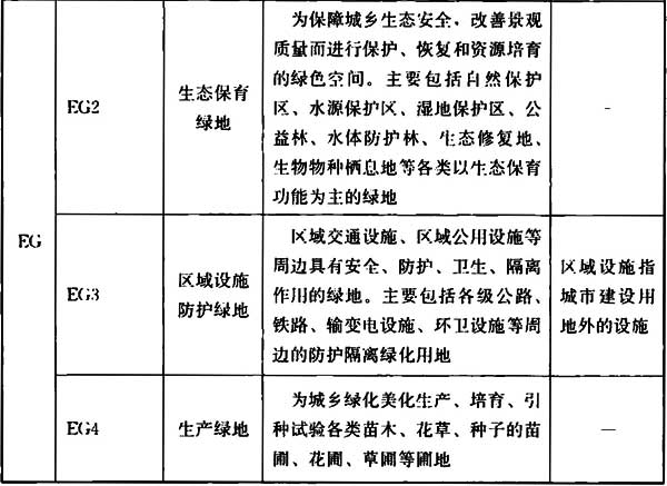 表2.0.4-2 城市建设用地外的绿地分类和代码