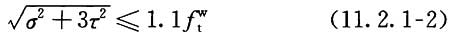2 在对接和T形连接中,承受弯矩和剪力共同作用的对接焊缝或对接与角接组合焊缝,其正应力和剪应力应分别进行计算。但在同时受有较大正应力和剪应力处(如梁腹板横向对接焊缝的端部)应按下式计算折算应力: