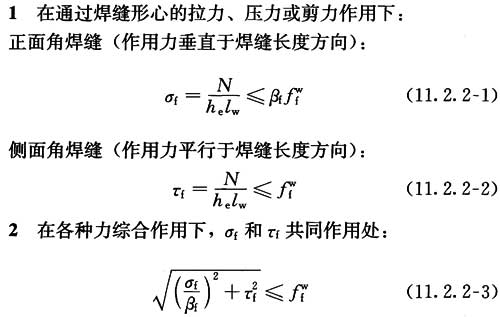 11.2.2 直角角焊缝应按下列规定进行强度计算: