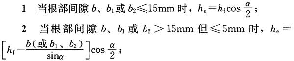 3 当30°≤α≤60°或α<30°时,斜角角焊缝计算厚度he应按现行国家标准《钢结构焊接规范》GB 50661的有关规定计算取值。