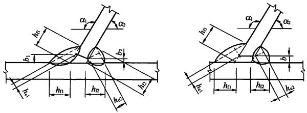图11.2.3-1 T形连接的斜角角焊缝截面