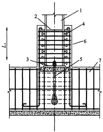 6-外包混凝土;7-基础梁;Lr-外包混凝土顶部箍筋至柱底板的距离