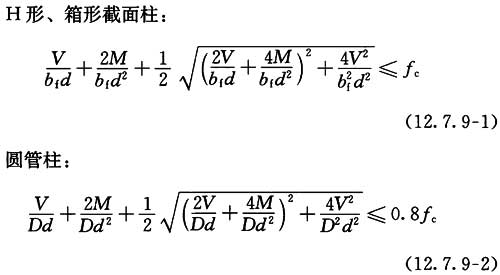 12.7.9 埋入式柱脚埋入钢筋混凝土的深度d应符合下列公式的要求与本标准表12.7.10的规定: