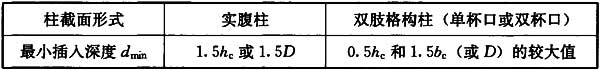 3 双肢格构柱柱脚插入混凝土基础杯口的最小深度不宜小于500mm,亦不宜小于吊装时柱长度的1/20。