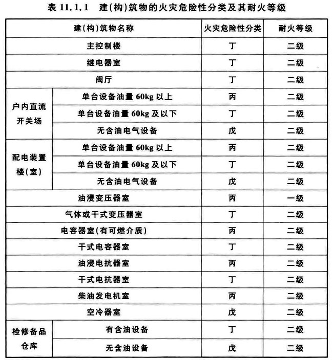 11.1 建(构)筑物火灾危险性分类、耐火等级、防火间距及消防道路