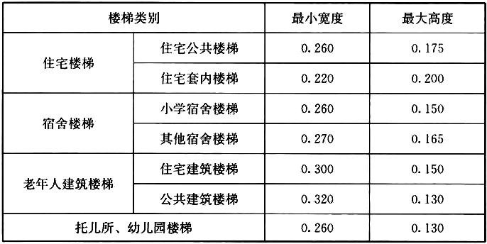 表6.8.10 楼梯踏步最小宽度和最大高度(m)