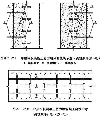 8.2.22 钢板混凝土剪力墙的墙体混凝土浇筑宜采用下列方式: