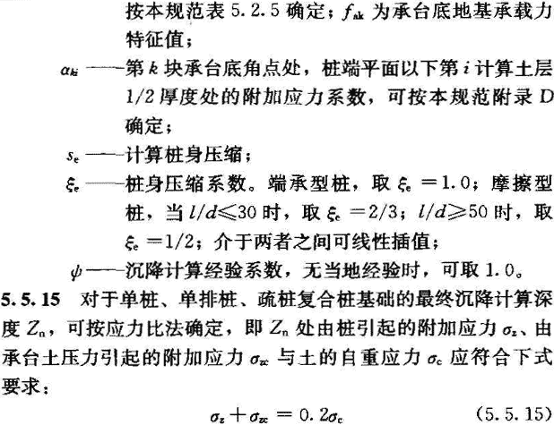 5.5.12 计算桩基沉降时,应考虑相邻基础的影响,采用叠加原理计算;桩基等效沉降系数可按独立基础计算。