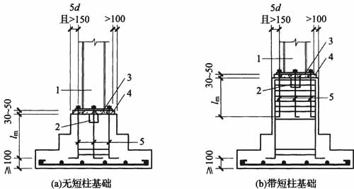 7.4.3 露出式柱脚基础构造(图7.4.1-1),应符合下列要求: