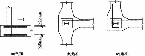 图7.4.5 边柱、角柱U形钢筋设置示意