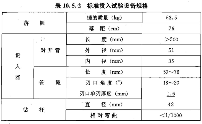 10.5.3 标准贯入试验的技术要求应符合下列规定: