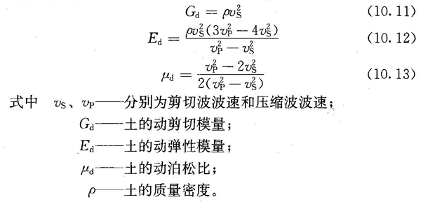 10.10.5 小应变动剪切模量、动弹性模量和动泊松比,应按下列公式计算: