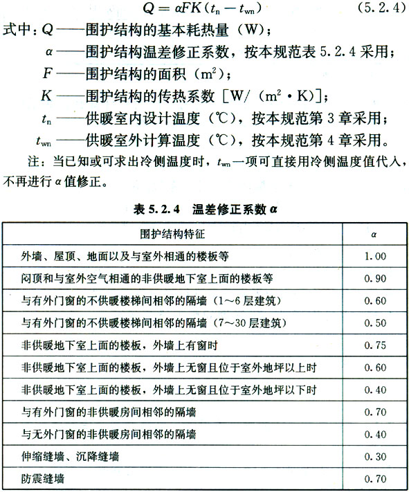 5.2.4 围护结构的基本耗热量应按下式计算: