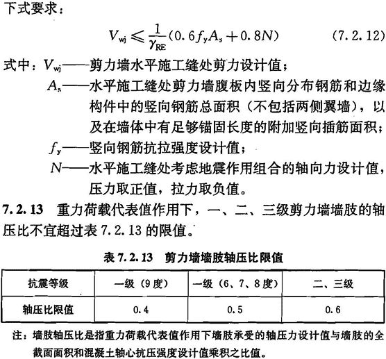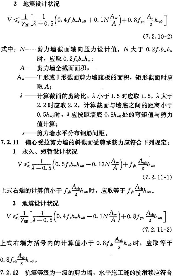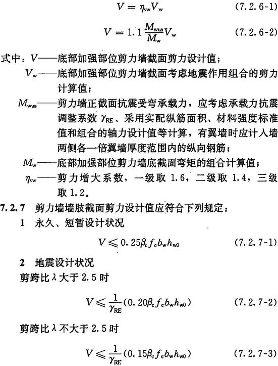 7.2.6 底部加强部位剪力墙截面的剪力设计值,一、二、三级时应按式(7.2.6-1)调整,9度一级剪力墙应按式(7.2.6-2)调整;二、三级的其他部位及四级时可不调整。