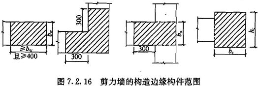 7.2.16 剪力墙构造边缘构件的范围宜按图7.2.16中阴影部分采用,其最小配筋应满足表7.2.16的规定,并应符合下列规定: