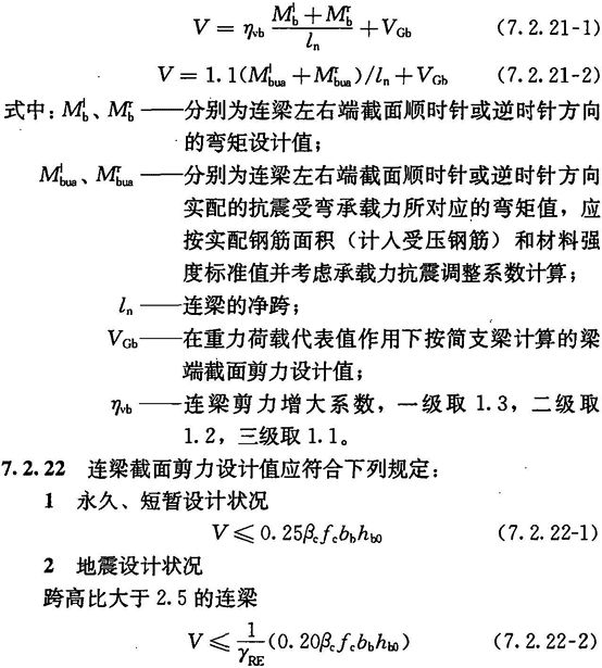 7.2.21 连梁两端截面的剪力设计值V应按下列规定确定: