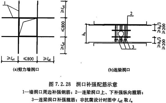 7.2.28 剪力墙开小洞口和连梁开洞应符合下列规定: