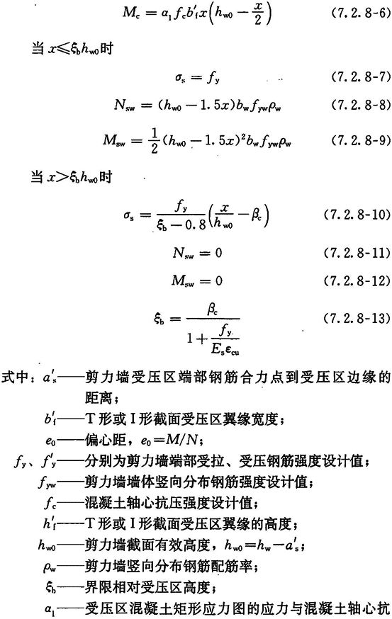 2 剪力墙约束边缘构件阴影部分(图7.2.15)的竖向钢筋除应满足正截面受压(受拉)承载力计算要求外,其配筋率一、二、三级时分别不应小于1.2%、1.0%和1.0%,并分别不应少于8Φ16、6Φ16和6Φ14的钢筋(Φ表示钢筋直径);