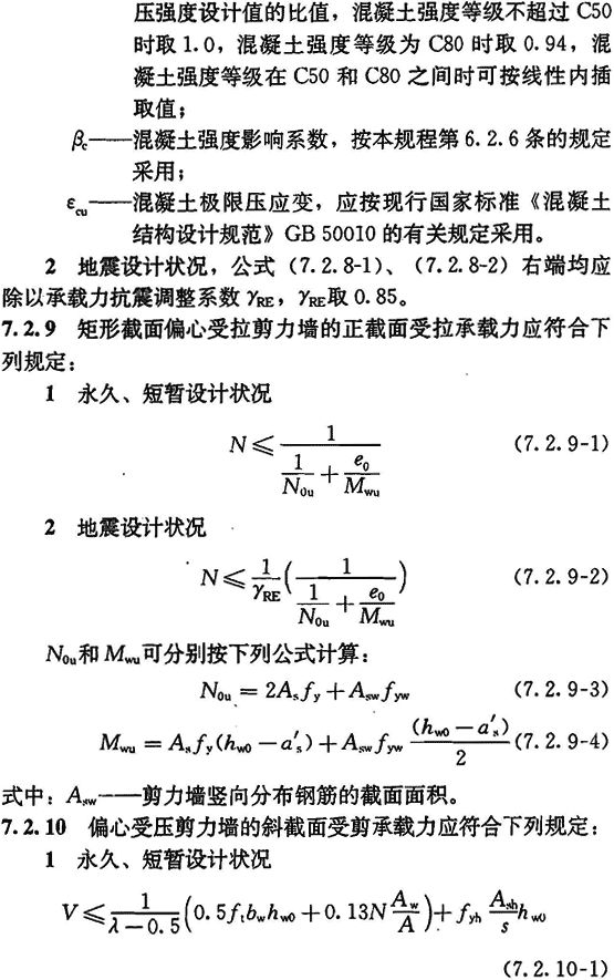 7.2.4 抗震设计的双肢剪力墙,其墙肢不宜出现小偏心受拉;当任一墙肢为偏心受拉时,另一墙肢的弯矩设计值及剪力设计值应乘以增大系数1.25。