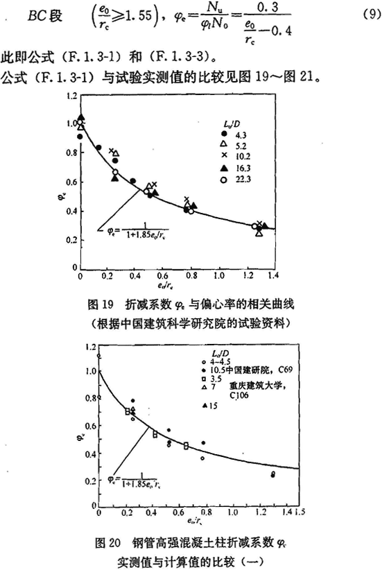 F.1.1 本规程对圆型钢管混凝土柱承载力的计算采用基于实验的极限平衡理论,参见蔡绍怀著《现代钢管混凝土结构》(人民交通出版社,北京,2003),其主要特点是: