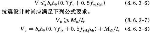 ρsh——水平箍筋的配箍率;ρsh=Ash/bes,当ρsh>1.2%时,取1.2%;Ash为配置在同一截面内箍筋的截面面积(mm2);s为箍筋的间距(mm)。