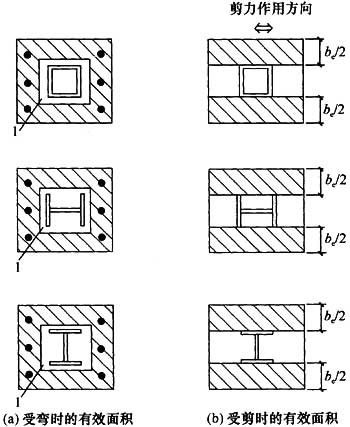图8.6.3-1 斜线部分为外包式钢筋混凝土的有效面积