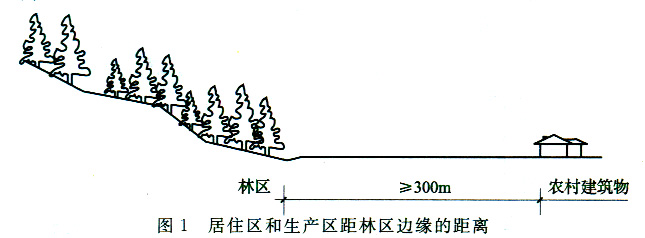 3.0.7 该条主要是根据国内外林区火灾的经验教训总结得出的。实践证明,防止山火进村和村火进山,在低火险气候条件下,300m的距离是有效的,如图1所示。
