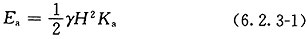6.2.4 当墙背直立光滑、土体表面水平时,主动土压力可按下式计算: