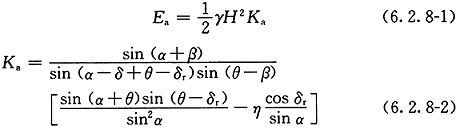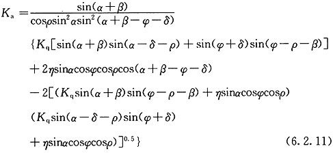 6.2.11 考虑地震作用时,作用于支护结构上的地震主动土压力可按本规范公式(6.2.3-1)计算,主动土压力系数应按下式计算: