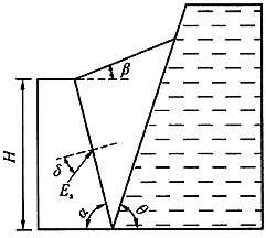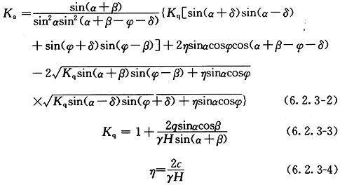 6.2.3 根据平面滑裂面假定(图6.2.3),主动土压力合力可按下列公式计算: