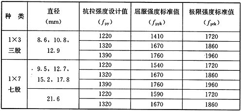 2 采用预应力钢绞线时,其力学性能必须符合现行国家标准《预应力混凝土用钢绞线》GB/T 5224的规定,其抗拉强度应符合表E.0.2-1的规定;
