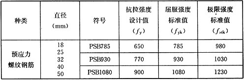 表E.0.2-2 预应力螺纹钢筋抗拉强度设计值、标准值(N/mm2)