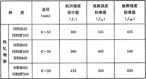表E.0.2-4 普通螺纹钢筋抗拉强度设计值、标准值(N/mm2)