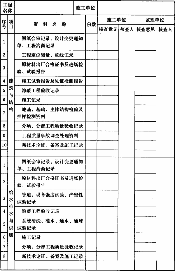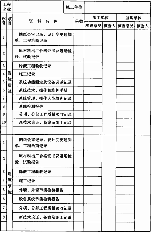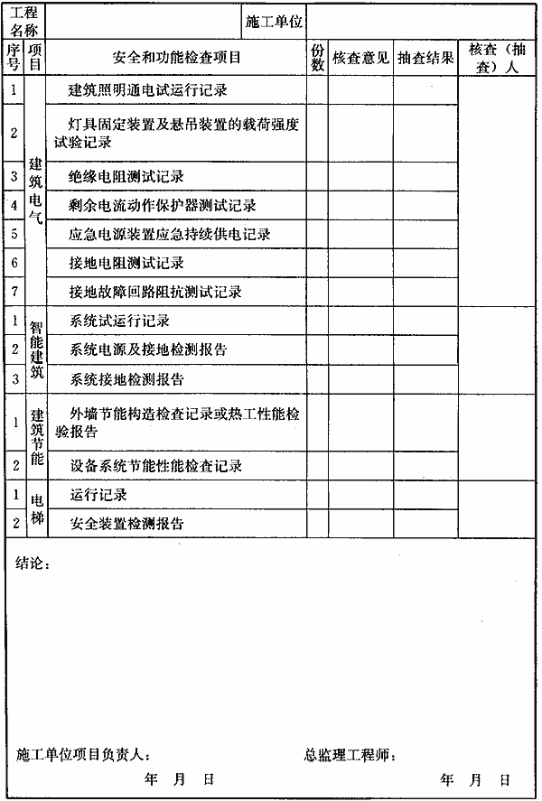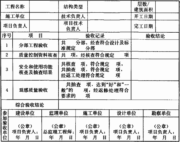 H.0.1 单位工程质量竣工验收应按表H.0.1-1记录,单位工程质量控制资料及主要功能抽查核查应按表H.0.1-2记录,单位工程安全和功能检验资料核查应按表H.0.1-3记录,单位工程观感质量检查应按表H.0.1-4记录。