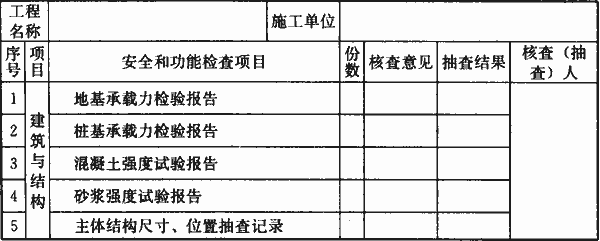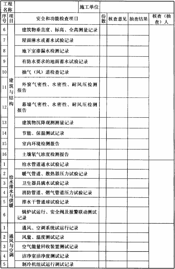 表H.0.1-3 单位工程安全和功能检验资料核查及主要功能抽查记录