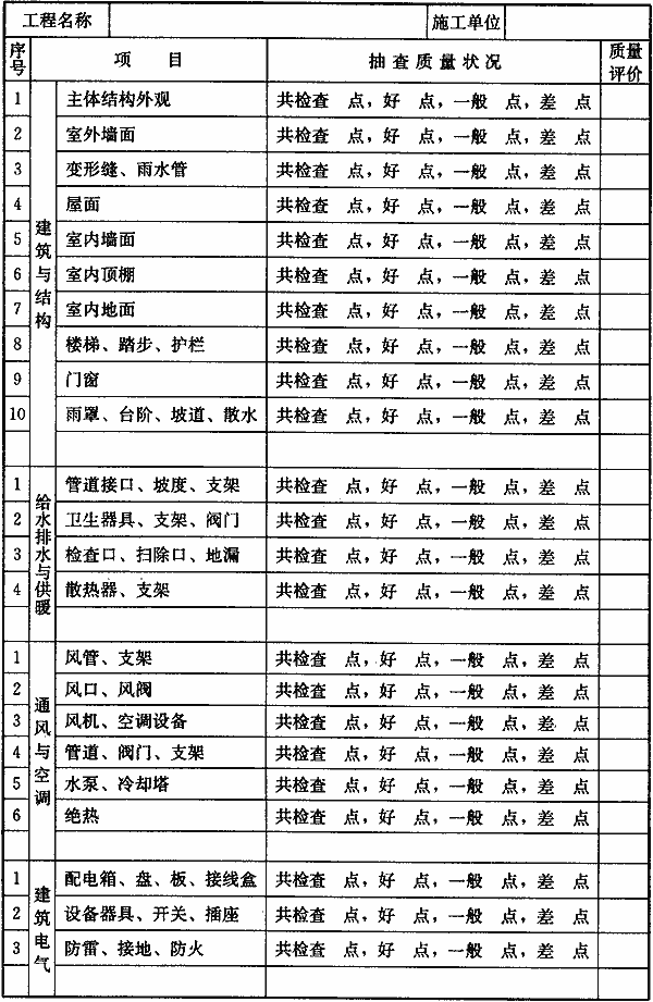 注:1 对质量评价为差的项目应进行返修;