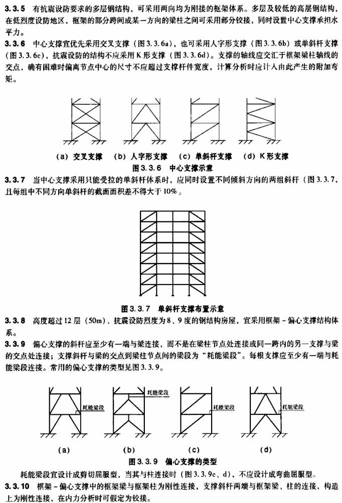 3.3.4 非抗震设计的多层钢结构,也可采用梁柱均铰接的框架体系,但宜在部分柱间设置中心支撑组成支撑框架。