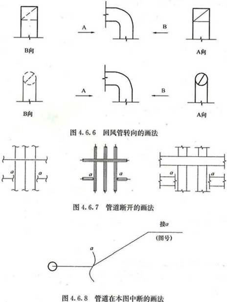 4.6.4 双线管道分支的画法见图4. 6.4。