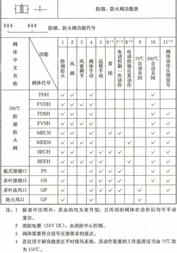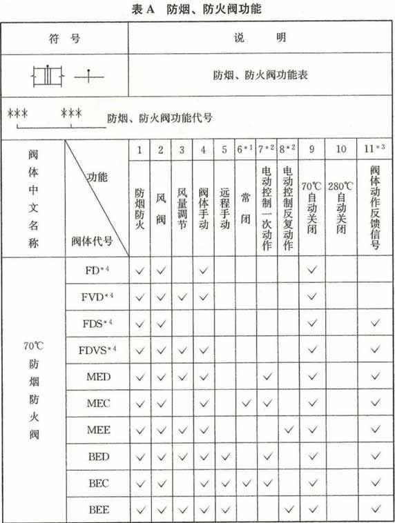 附录A 防烟、防火阀功能表