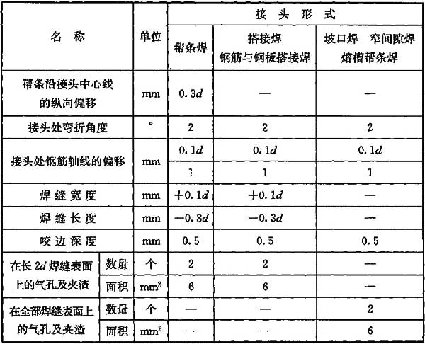 4 咬边深度、气孔、夹渣等缺陷允许值及接头尺寸的允许偏差,应符合表5.5.2的规定。