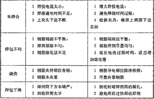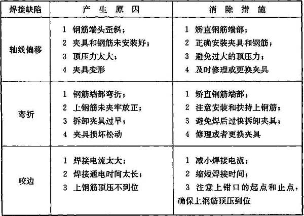 4.6.7 电渣压力焊焊接缺陷及消除措施见表9。