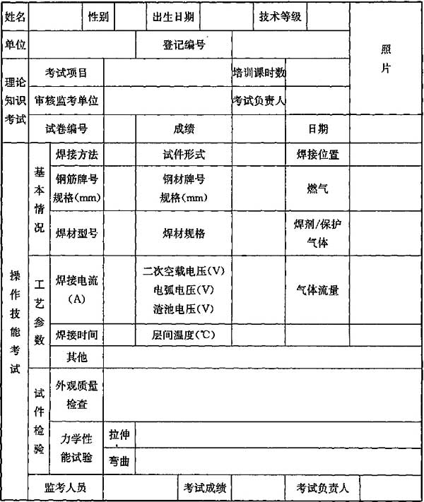 注:本表填毕后,列入焊工考试档案备查。