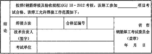 6.0.11 “钢筋焊工考试结果登记表”式样见表13。
