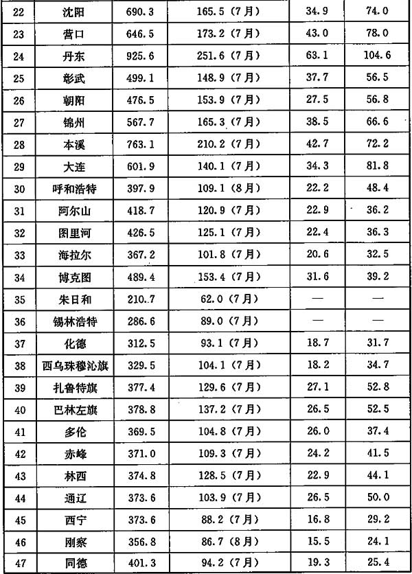 2 表中给出的测量站,不包括平均年降雨量小于300mm的站点;