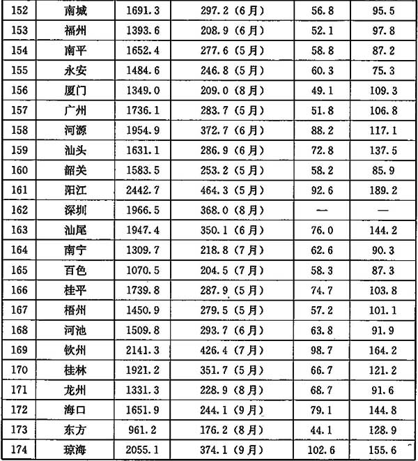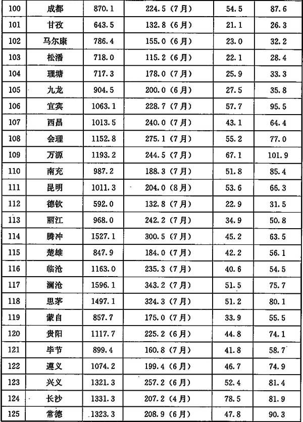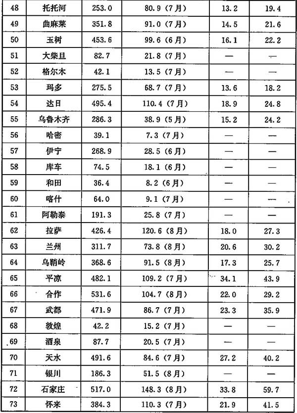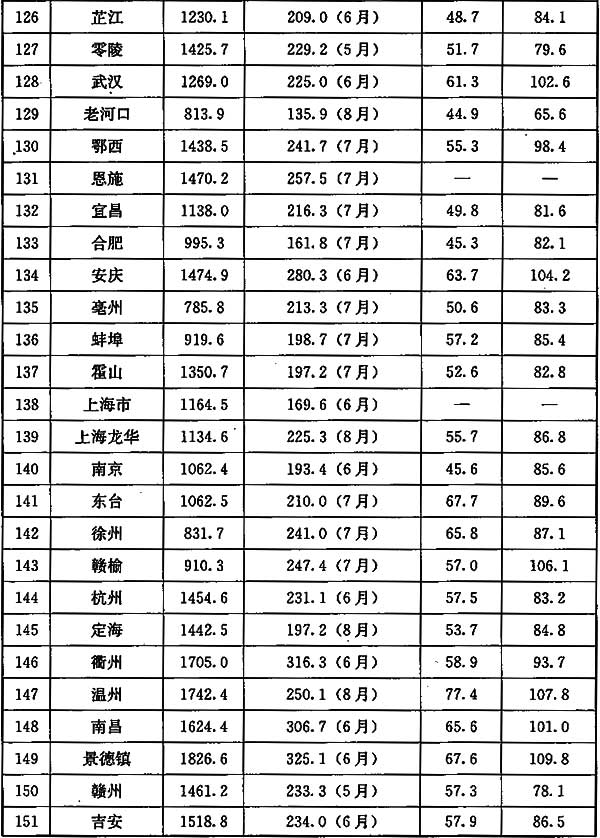 3 表中“上海龙华”,由于实测数据仅为8年,故本表给出的一系列统计数据,仅供使用过程中参考。